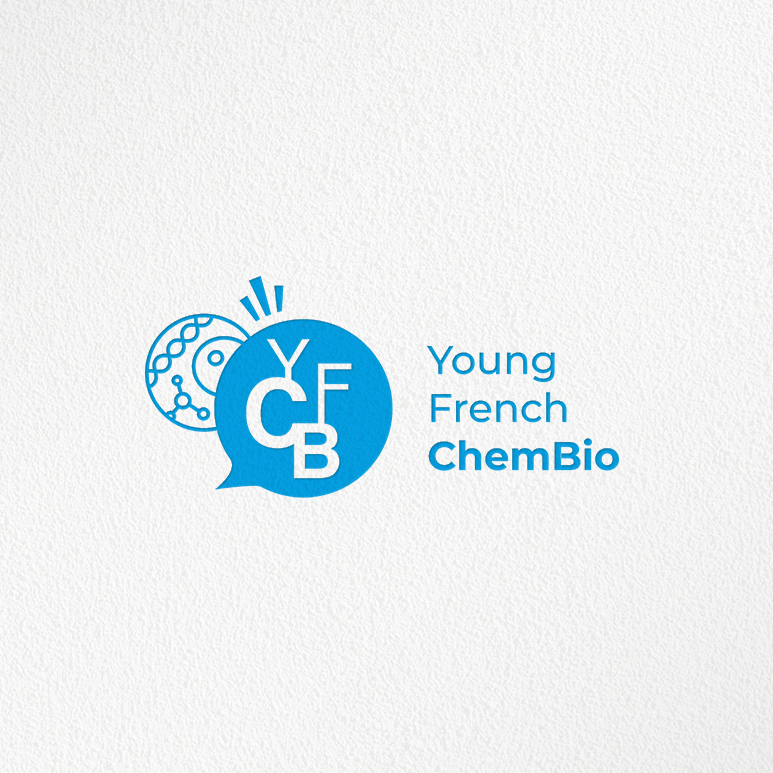 Logo design for Young French Chembio (YFCB), a branch of the Société Chimique de France supporting early-career researchers in chemical biology. The logo reinterprets the SCF identity with a younger, more dynamic tone, reflecting the field and the community it brings together.
